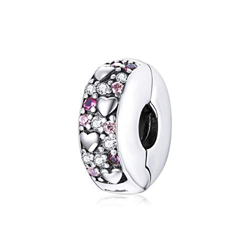 Silver Hjärta Klämma Kärlek Charm Stopper Kompatibel Med Pandora Armband Halsband, Sterlingsilver, Kubisk Zirkonia