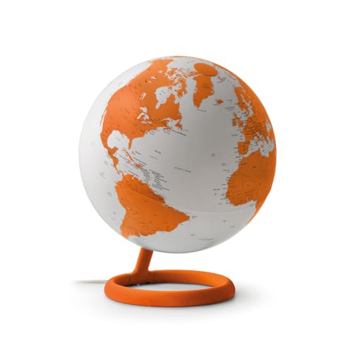 Tecnodidattica Atmosphere Evolve Velvet Karneol - Skandinavisk design jordglob med färglampa, engelsk politisk kartografi, diameter 30 cm och tillverkad i Italien