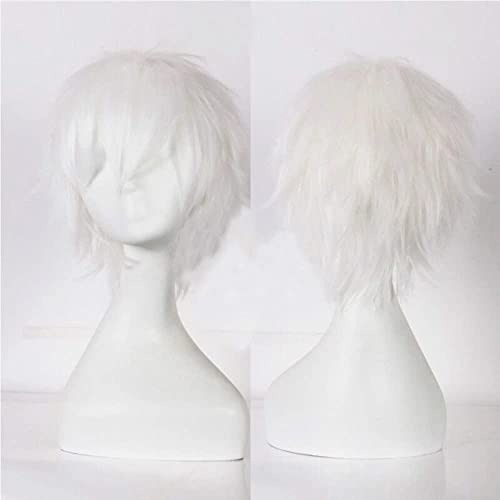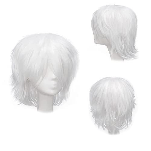 Gairyan Peruk för kvinnor, kort, vit, cosplay, anime, halloween, unisex, cosplay peruk för män, raka syntetiska peruker, för utklädnad, fest, karneval, fest