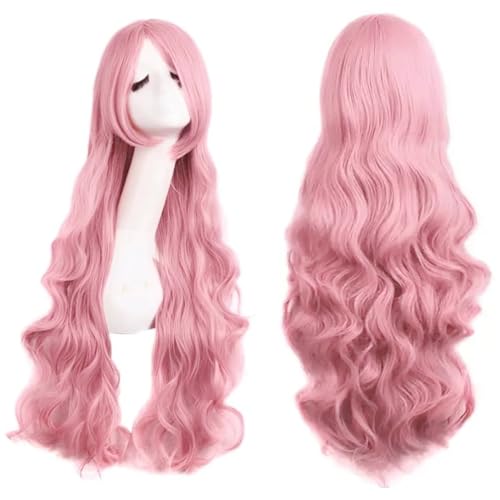 Colorful panda 32 tum/80 cm rosa lång lockig vågig cosplay peruker för kvinnor Flickor Barn Anime kostym fest Halloween karneval peruk värmebeständigt syntetiskt hår