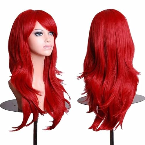 Colorful panda 28 tum/70 cm röd lång lockig vågig cosplay peruker för kvinnor Flickor Barn Anime kostym fest Halloween karneval peruk värmebeständigt syntetiskt hår