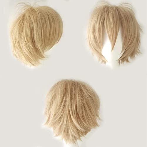 Cybelleza Anime Kort Brun Cosplay Peruk för Kvinnor Män - Halloween, Karneval, Kostym Party - Syntetisk Vågig Slät med Gratis Mössa, Ljusbrun