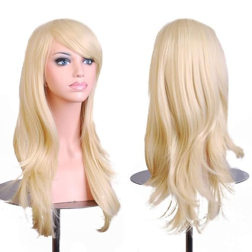 Colorful panda 28 tum/70 cm blond lång lockig vågig cosplay peruker för kvinnor Flickor Barn Anime kostym fest Halloween karneval peruk värmebeständigt syntetiskt hår