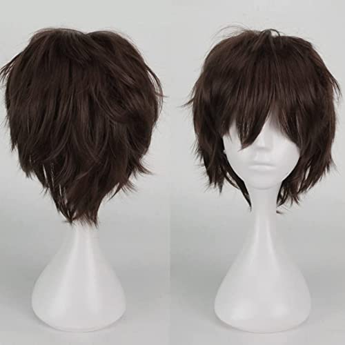 Anime peruk mörkbrun kort cosplay peruker halloween kvinnor män syntetisk rak fin klänning peruk vågig slät peruk karneval kostym party peruk med gratis mössa för kvinnor män