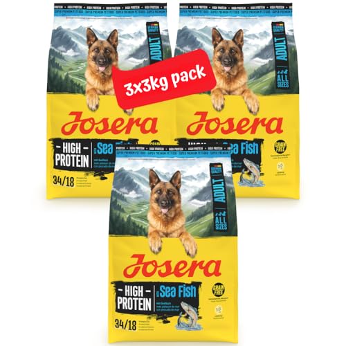 JOSERA Adult High Protein havsfisk (3 x 3 kg) | Premium torrfoder för vuxna och sportiga hundar | lax och sötpotatis | kornfri och proteinrik | L-karnitin och taurin | 3-pack
