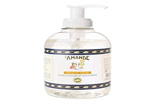 L'AMANDE - Flytande tvål för händer och kropp fräsch och mild, närande rengöringsbad med C-vitamin och karoten, handtvål och naturligt duschskum, eterisk olja av söt apelsin, 300 ml