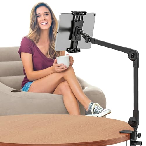 iPad Stativ Upp Till 160 CM/65 TUM, 360° Justerbar Säng för iPad Pro, Mini, Samsung Galaxy Tab (4,7–12,9 Tum) Surfplattehållare