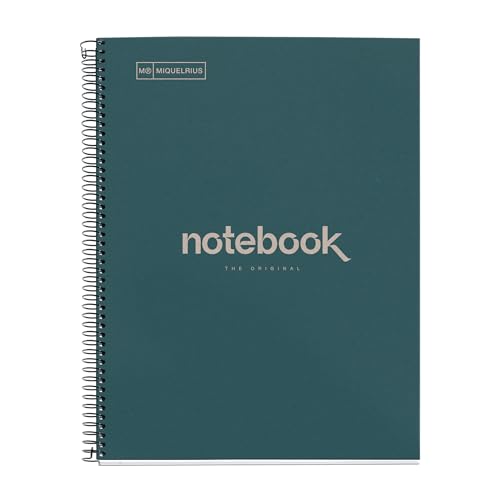 Miquelrius - Återvunnen A4-anteckningsbok - 80 ark 80gr - 7 mm ränder - 1 färgremsa - Återvunnen kartong lock - Eco Marine färg