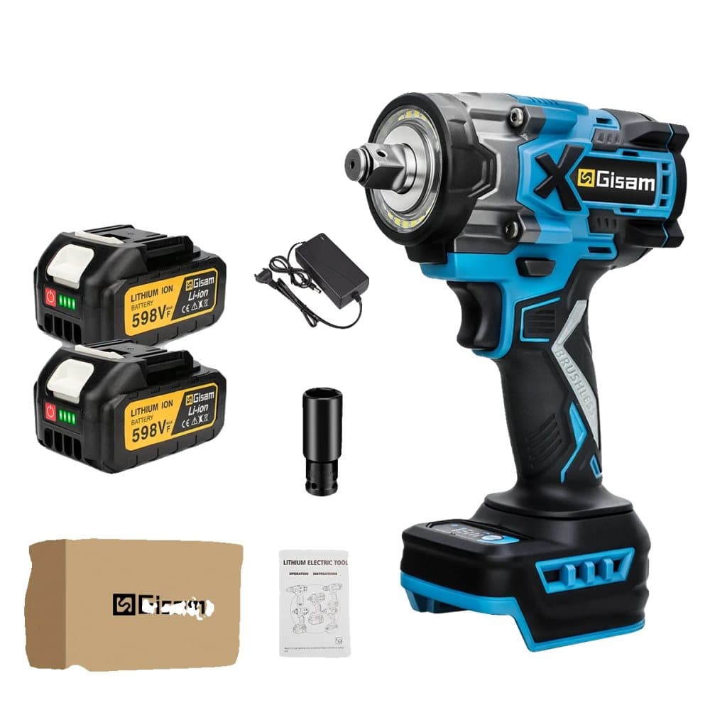 Slagskruvdragare, 900 N.M vridmoment, borstlös motor,2 Batteri Kartonglåda