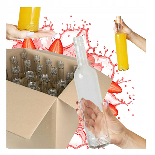 20x Flaskor FUTURA GPI 500ml med lock + Kartonglåda för alkohol 0,5l