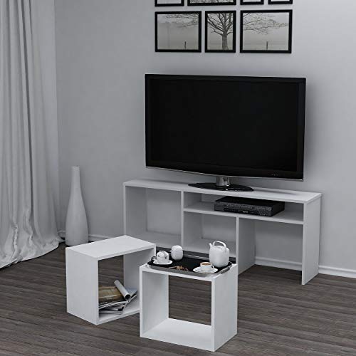 Homemania KSBYZ01 Kasa TV-skåp med soffbord, Dörrar, hyllor för vardagsrum Vit i Trä, 141 x 29,5 x 57cm