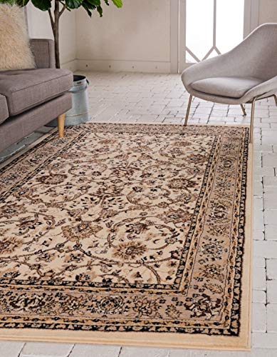 Unique Loom Kashan kollektion traditionellt blommönster, polypropen, elfenbenstoner, 5' x 8 tum