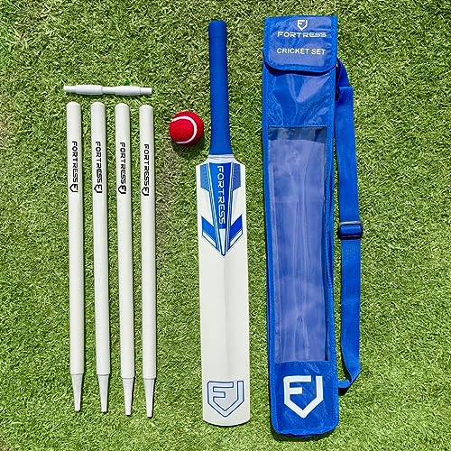 FORTRESS Trä Cricket Set - 3 Storlekar | Kashmir Pilträ | Barn, Junior & Senior (Senior)
