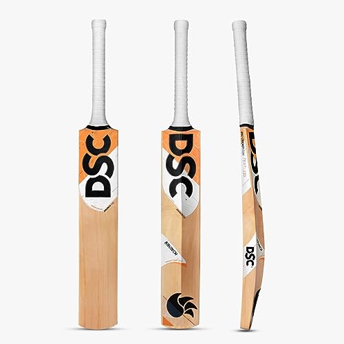 DSC KRUNCH 110 Kashmir Willow Junior Cricket Bats | Färg: Beige | Storlek: Små män | Material: KW trä | massiva kanter | Utsökt balans | Uttalad rosett | vadderat grepp