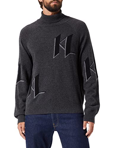 KARL LAGERFELD Herr Kashmir Kl Monogram Sköldpaddshals Jumper, Mörkgrå melange, S