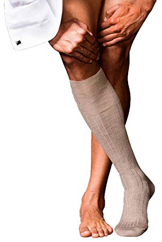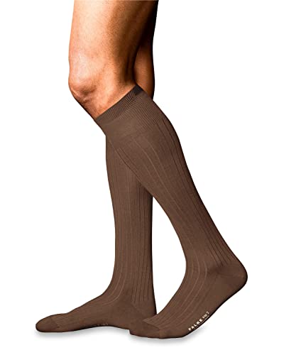 FALKE Herr nr 2 knästrumpor kashmir svart blå många andra färger förstärkta knästrumpor med mönster andas långa enfärgade höga och varma ribbade hög kvalitet 1 par, Brun (Pebble Melange 5416), 43-44 EU
