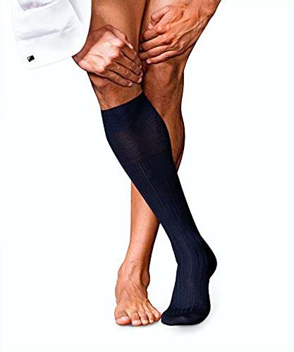 FALKE Herr nr. 2 långa andningsbara kashmir-strumpor hög kvalitet stigande kashmir eleganta varma förstärkta platta sömmar med mjuka tår på huden 1 par, Blå (mörk marinblå 6370), 41/42 EU