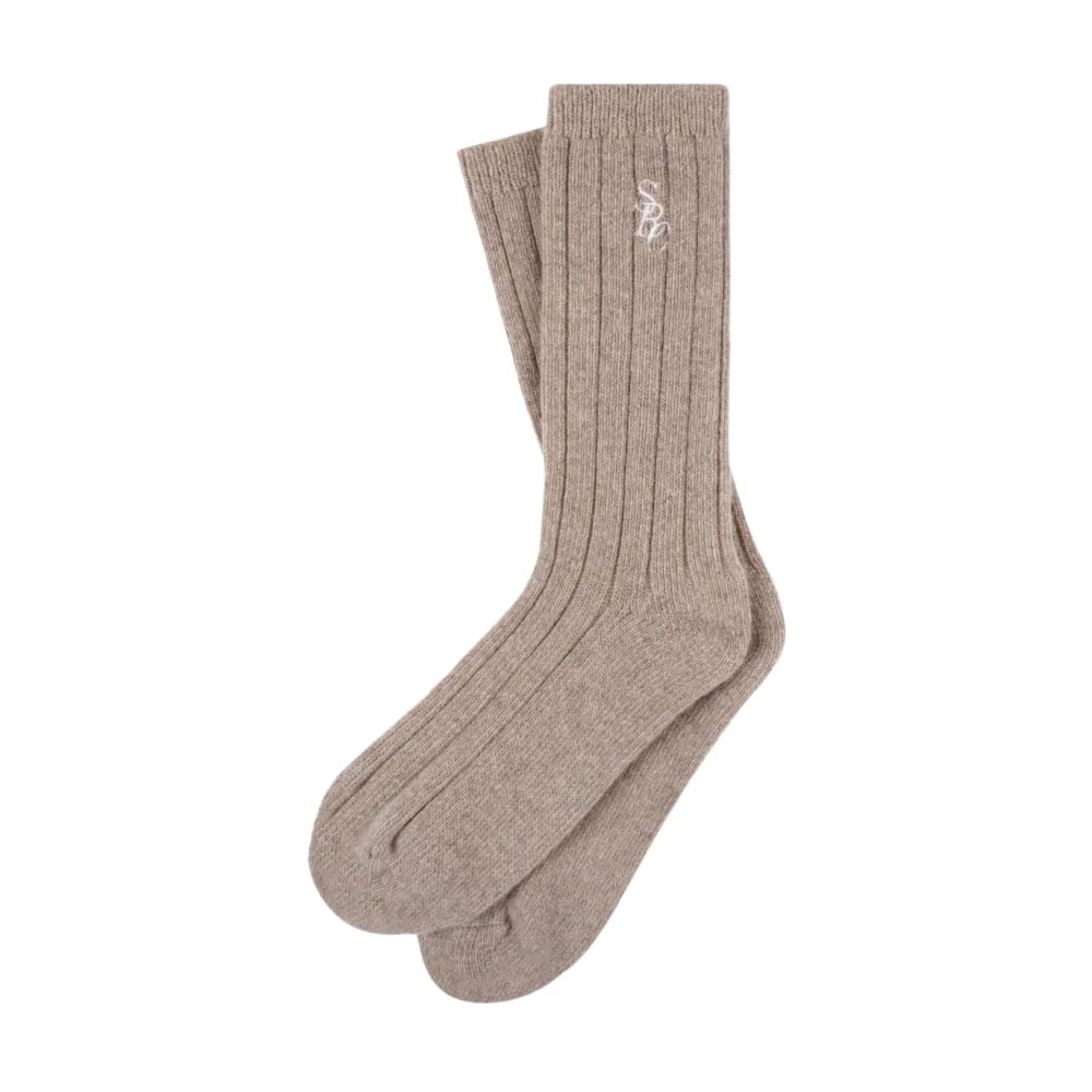 Sporty & Rich, Underkläder , Dam, ONE Size, Kashmir, Ribbade strumpor med broderad logga