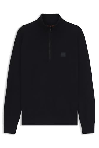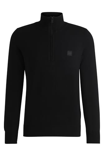BOSS Kanobix S Troyer för män av bomull med kashmir och ull med logotypmärke, Black1, L