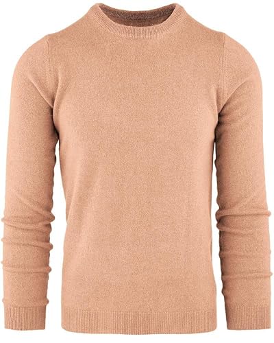 CASHMERE ZONE - Herrtröja Med Rund Hals, 30% Kashmir 70% Ull, Tillverkad i Italien, Långärmad Tröja, Vintertröja (L, Beige)