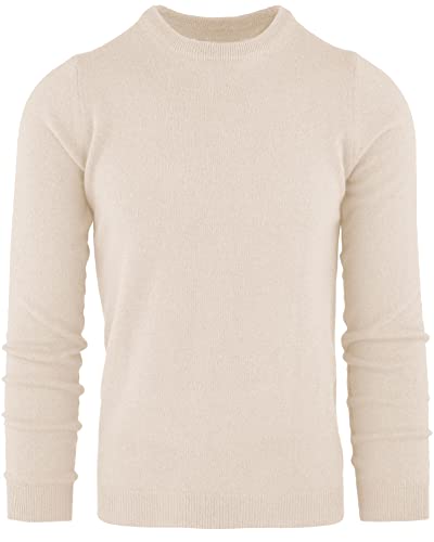 CASHMERE ZONE - Herrtröja Med Rund Hals, 30% Kashmir 70% Ull, Tillverkad i Italien, Långärmad Tröja, Vintertröja (L, Grädde)