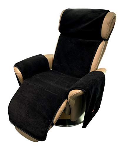 Alpull fåtöljskydd relaxfåtölj antracit/svart med fickor 100 % ull kashmir