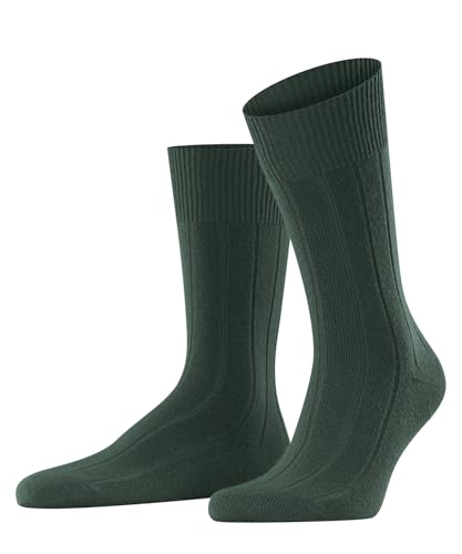 FALKE herr Lhasa Rib strumpor andas klimatreglerande lukthämmande hållbar ull kashmir förstärkta herrstrumpor ädel värmande platta sömmar tryckfri spets enfärgad ribbad 1 par, Grön (Hunter Green 7441)