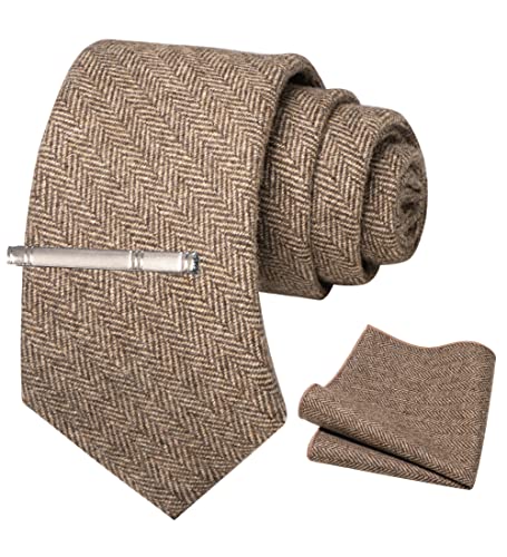 JEMYGINS kashmir ull slips och näsduk slipsklämma set för män, Svart brun vinröd randig 2, M