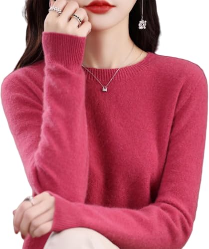MODEARTIKEL Kashmirtröja, kashmirtröjor för kvinnor, kashmir rund hals långärmad mjuk pullover tröja tröja, Hallon, XL