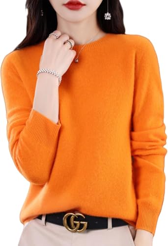 MODEARTIKEL Kashmirtröja, kashmirtröjor för kvinnor, kashmir rund hals långärmad mjuk pullover tröja tröja, Orange, XL