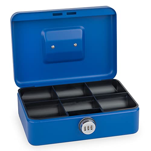 Sax Kassaskrin med kombinationslås, extra starkt lås, 25 x 18 x 9 cm, stor, blå, 0-823-14