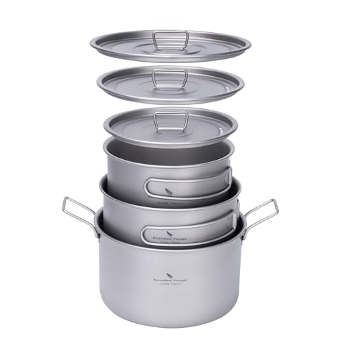 iBasingo Camping matlagningsgryta set 1,2 L och 1,8 L och 2,4 L utomhus titan köksredskap sås gryta solo het gryta lätt bärbar resa kastrull matlagningskit ryggsäcksutrustning Ti2109C