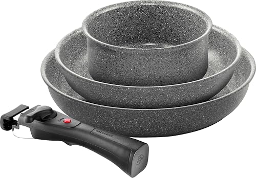 BALLARINI Torre stekpanneset och kastrull, 20 + 28 cm + kastrull 16 cm, keramisk beläggning, induktionshäll, avtagbart handtag, aluminium