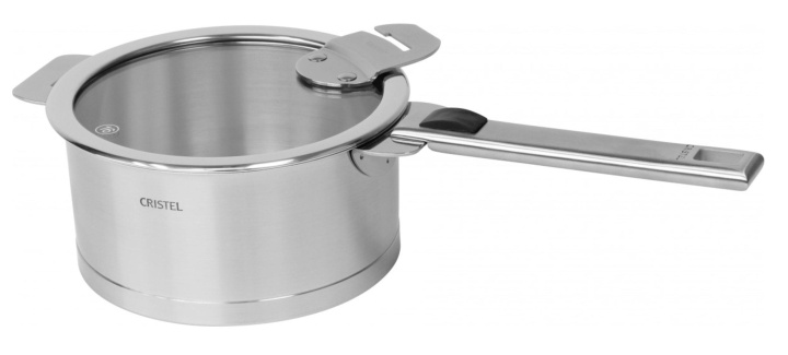 Rostfri kastrull med glaslock, avtagbart handtag, Strate - Cristel - 16 cm
