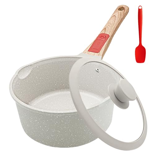 AIKENBBKK kastrull 16 cm med lock, 1,5 l nonstick gryta med avtagbart handtag, non-stick-belagd mjölkgryta, lämplig för alla typer av spisar, diskmaskins- och ugnssäker (vit)