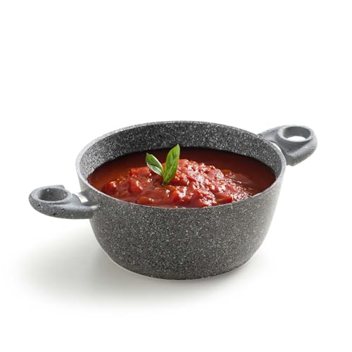 Avilia Nonstick-kastrull med 2 handtag, non-stick-kastrull med steneffekt, ergonomisk, perfekt för såser och pasta, av aluminium, 20 cm, tillverkad i Italien