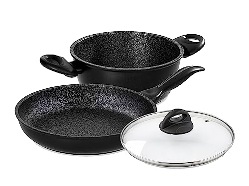 Barazzoni Granitica Extra Induction, 3-delat set, stekpanna 24 Cm, kastrull 20 Cm, glaslock 20 cm