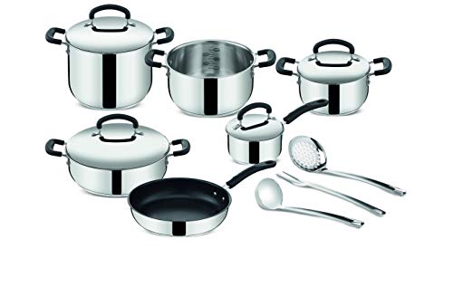 Lagostina Praktisk induktionsgryta set i 18/10 rostfritt stål, 13 stycken, batteri med 4 kastruller, kastrull, non-stick-stekpanna, slev och skopor, 4 lock