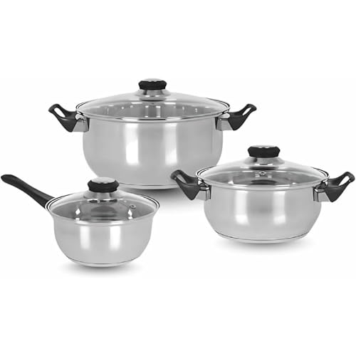 PARENCE.- 6-delat induktionskokkärl set - Rostfritt stål med glaslock - Kastruller och stekpannor för alla brännare, inklusive induktion | Set med 3 blomkrukor Ø16-20-24 cm med lock