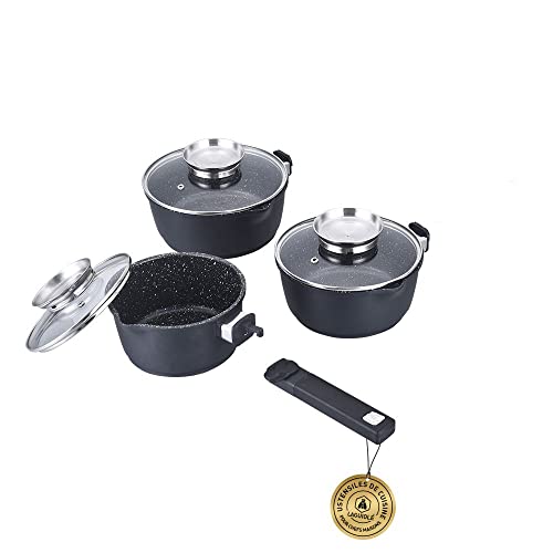 Laguiole - set 3 kastruller 16/18/20 cm svart avtagbar non-stick Greblon C2+ induktion
