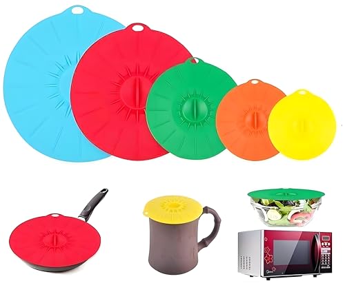 Voarge Silikonlock, kastruller, koppar och mikrovågsugn, matöverdrag, vakuumkombo med sugeffekt för köket, set med 5 delar, slumpmässig färg