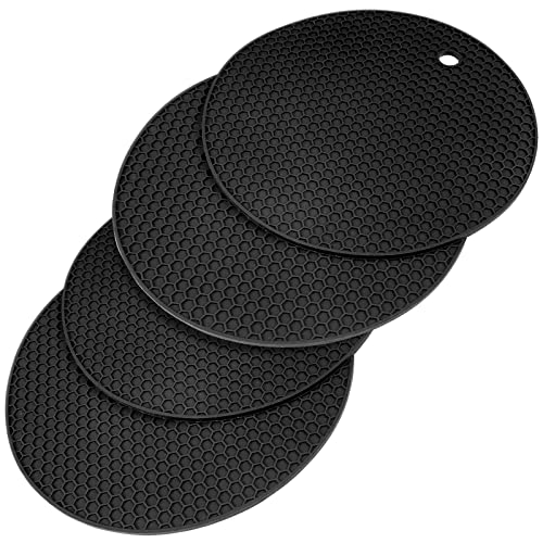 Uootach Set med 4 underlägg i silikonmatta, halkfri silikonunderlägg, hållbar, vattentät och halkfri, lämplig för kastruller, stekpannor, tekannor och skålar (svart)