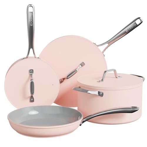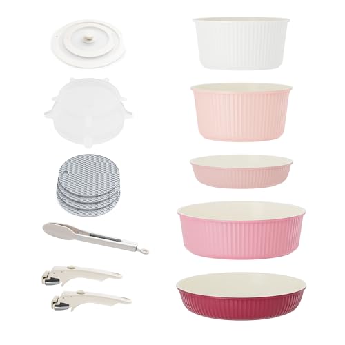 CIARRA Beyond kokkärl set non-stick induktionshäll kastruller och stekpannor set med lock med 24 cm holländsk ugn, 26 cm stekpanna, 28 cm stekpanna, 20 cm kastrull rosa