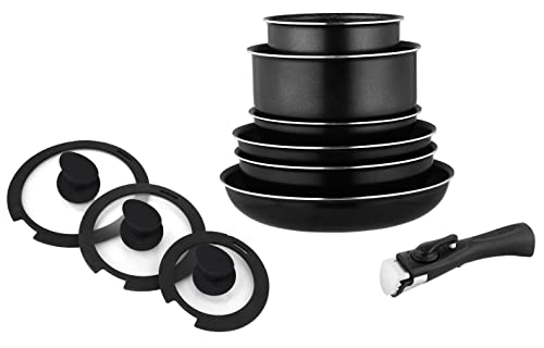 Tefal Ingenio Easy ON kastruller och kokkärl set, 10 delar, stapelbar, avtagbart handtag, platsbesparande, non-stick belagd, svart, L1599143