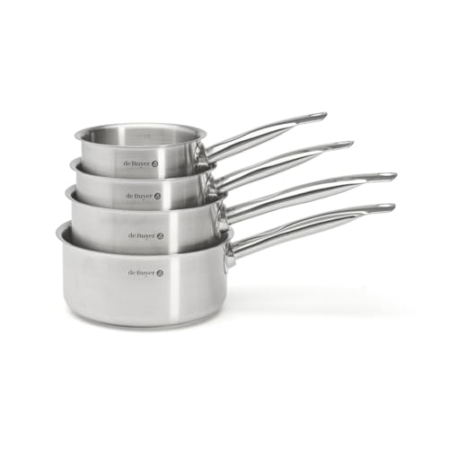 De Buyer - Set med 4 PRIM'APPETY kastruller - 14/16/18/20 cm - PFAS-fri, 18/10 rostfritt stål av professionell kvalitet, tjock magnetisk botten för kontrollerad matlagning, alla spisar + ugn, borstad