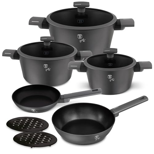 Berlinger Haus 10 st aluminium non-stick induktion köksredskap set – kastruller och stekpannor med lock för hem kök ugn diskmaskinssäker, miljövänlig kompatibel med alla spisar, induktions matlagning