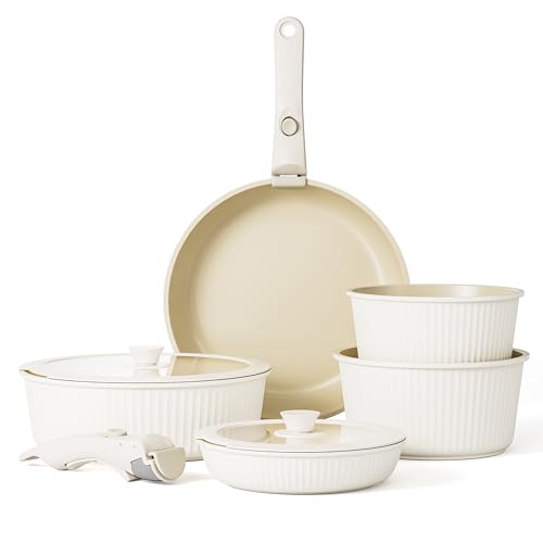 BEZIA Grytset med avtagbara handtag, kastruller och stekpannor set med hälsosam keramisk beläggning, induktionsgrytset, 13 stycken, för alla hällar, stapelbar design, diskmaskin/ugnssäker