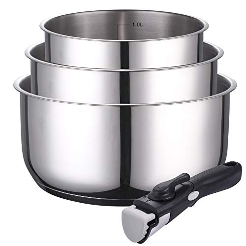 Tefal Ingenio Set med 3 kastruller + avtagbart handtag, induktion, non-stick-beläggning, stapelbar, diskmaskinssäker, tillverkad i Frankrike, Eco Resist On L7679202