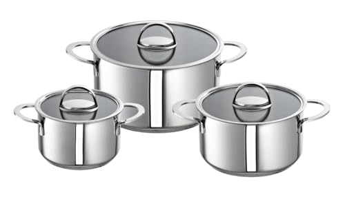 ELO Grytset MYSTERY, kastruller i rostfritt stål med hopfällbart glaslock och doseringshjälpmedel, köksredskap för keramik, gas, elektrisk, induktionsspisar – diskmaskinssäker, antal: 1 x set om 3