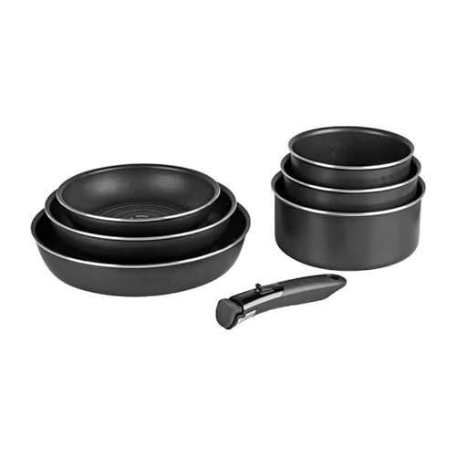 Tefal Ingenio Easy On - Set med 2 stekpannor + 2 kastruller + wok + gryta + 5 tillbehör + 2 avtagbara handtag, non-stick stekpannor, titanbeläggning, termosignal, inte lämplig för induktion